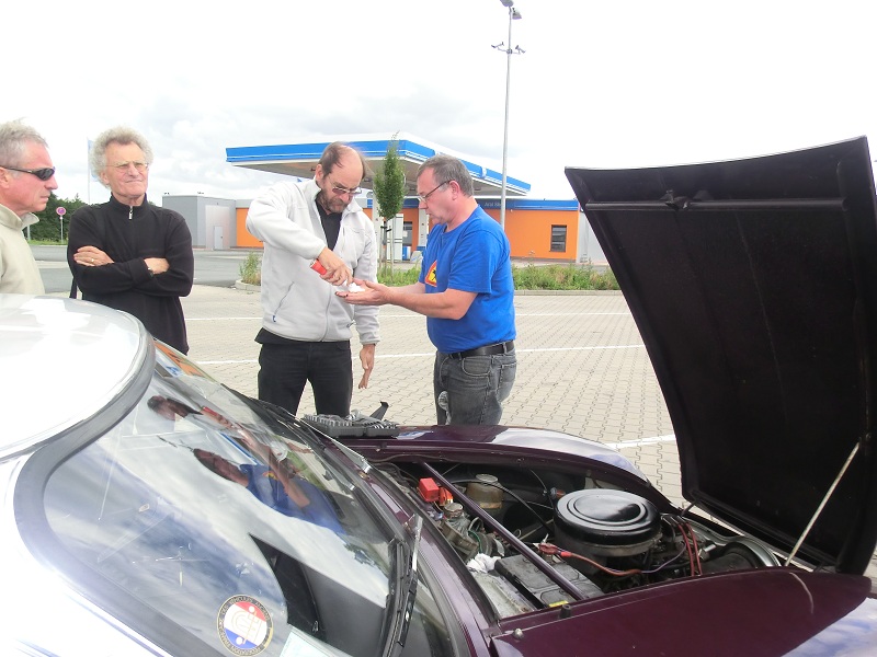 Comme nous ne sommes pas affamés, ce n’est qu’à 13 heures 45 que nous nous arrêtons sur une station près de Diepholz : le câble de débrayage de Philippe coince un peu…