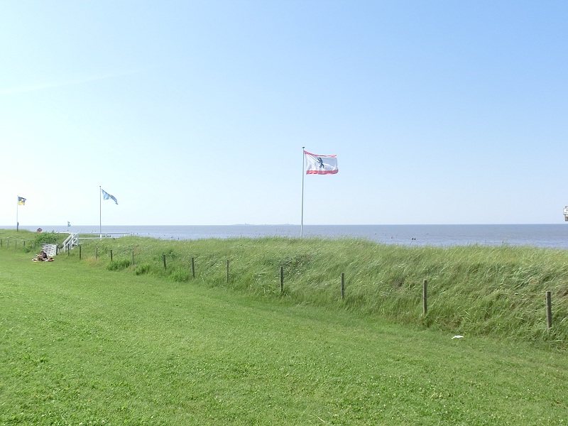 Nous faisons un arrêt et grimpons en haut d’une digue pour faire une photo : c’est que la « Wattenmeer » est juste derrière !