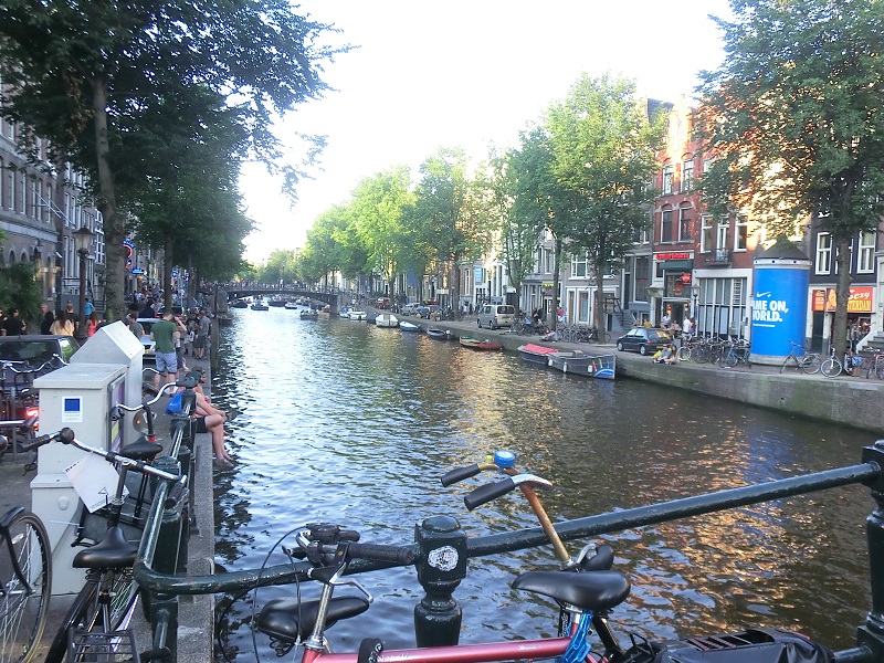La première navette est pleine… La seconde sera la bonne bien que son chauffeur nous semble un peu étrange à première vue… Le temps de déchiffrer le mode d’emploi du train et de trouver le bon, nous débarquons à 20 heures 30 à la gare principale d’Amsterdam et fonçons tout droit vers le centre. C’est comme débarquer dans un monde étranger, un peu comme les hommes arrivant dans un livre ( puis un film ) connu sur la planète des singes ! C’est surtout un choc disons « culturel » pour bon nombre d'entre nous !