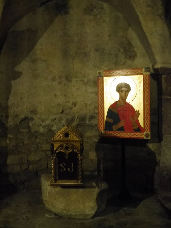 Dans la crypte on peut voir un reliquaire, la chasse de saint-Julien, le patron de l'édifice.