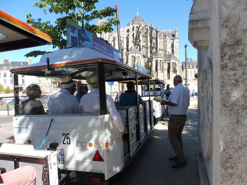Pour la dernière matinée du PBT 2017, direction Le Mans et son marché. Une inconnue subsiste : petit train... ou pas ? Oui, avait-on dit à l'office de tourisme, puis non, puis... nous l'apercevons ! Alors Pierre n'hésite pas à payer de sa personne, part à la course et le rattrape ! Du coup nous avons droit à une sympathique promenade en ville avec les commentaires appropriés !