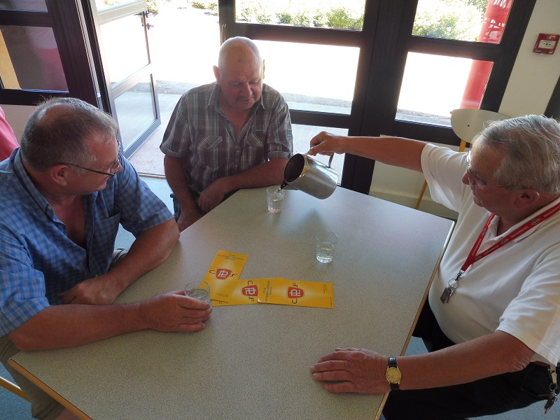 Puis nous reprenons le chemin du Lycée Les Horizons pour notre dernier déjeuner commun. Là Pierre exprime sa déception... La consommation fut trop raisonnable et il lui faut proposer à la revente le vin qui reste... et qui trouve preneur ! Il faut dire que Francis, Jean-Bernard et Jean-Marc ont créé la Confrérie des Buveurs d'Eau !