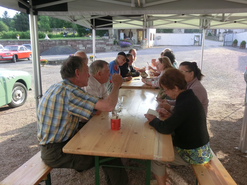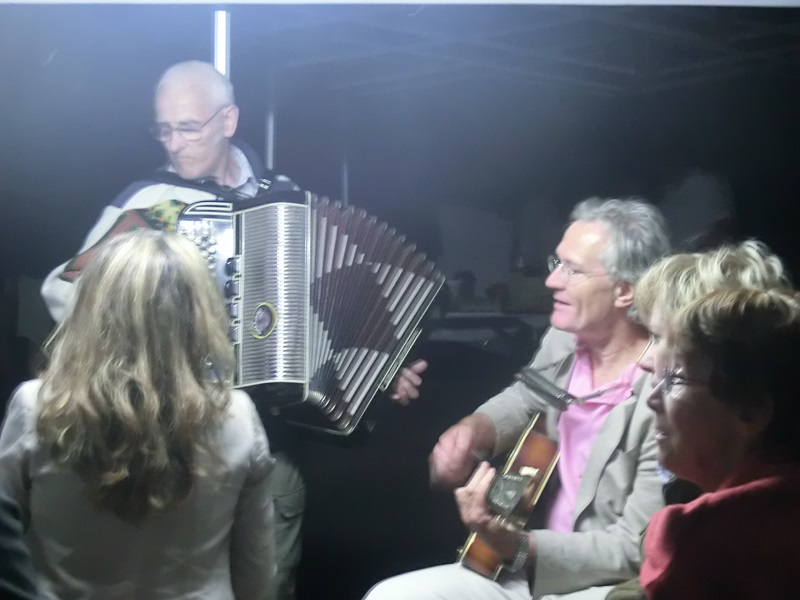 Les voitures sont sagement garées. La soirée commence et se terminera au son de l'accordéon de Bruno, de la guitare de Maurice et des chants...