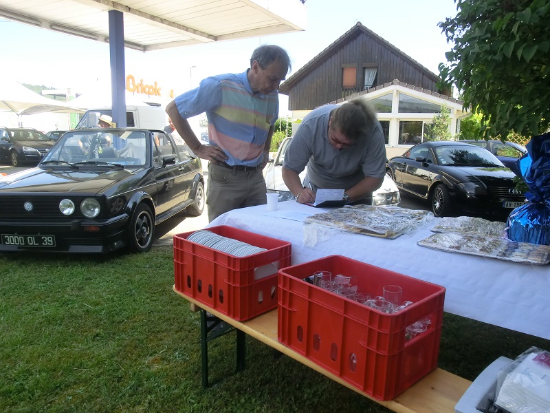 Le lendemain, 16 juillet, on s'affaire sur le parking de l'hôtel de Lons-le-Saunier. Christian et Jibé font le tour des pare-brise !