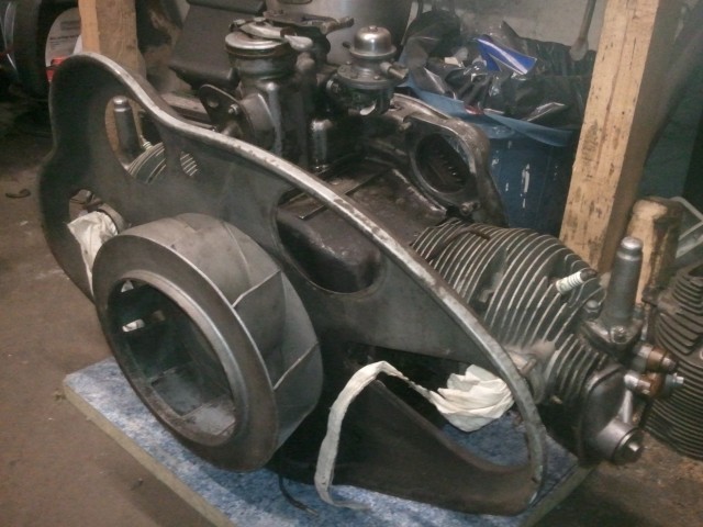 Le démontage est terminé, les petites pièces ont été nettoyées, il reste le plus gros : vilo, carter et anciens cylindres pour qu'ils soient remisés relativement propres.
