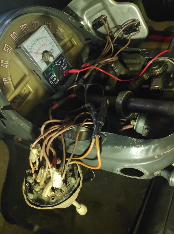 Il y a une autre panne que j'ai vue sur plusieurs comodos : c'est l'allumage des codes pendant qu'on roule. Il y a un ressort fin qui maintient une palette. Quand on allume les code, si les contacts de cette palette ne sont pas parfaits, le courant peut passer par ce ressort qui se met à chauffer et perd peu à peu son élasticité. Après, quand on est en position codes éteints, le ressort n'a plus la force de retenir la palette qui tombe et les codes s'allument.
