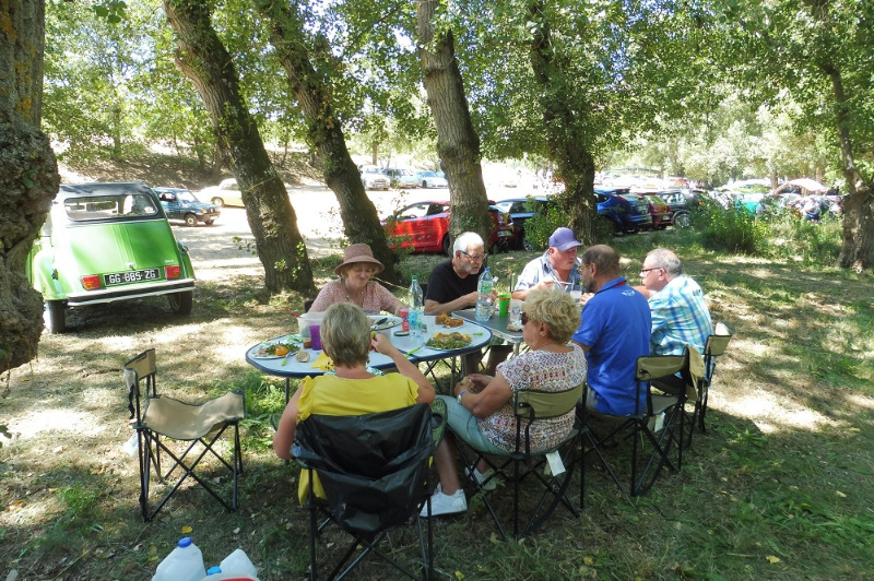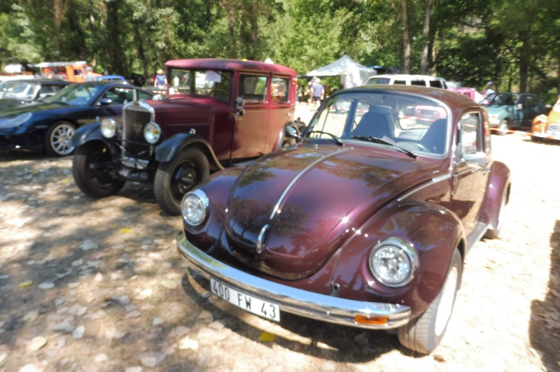 Une voix féminine nous interpelle : "vous êtes perdus ?". C'est Amandine ! La famille TESTUD est (presque) au complet : venus en voisins car ils habitent Langeac, ils ont amené deux autos, la Porsche conduite par le père et la Coccinelle conduite par le fils. C'est un réel plaisir de les rencontrer là, le Club est une grande famille... Où qu'on aille, on rencontre des amis !