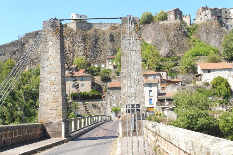 Nous partons au milieu de l'après-midi à la découverte du village de Chilhac, qui a le label "petite cité de caractère". Pour entrer dans le village, nous passons le pont sur l'Allier. Il a été mis en service en mars 1883 ! Comparez ces photos avec celles que nous avons prises à la sortie de Brioude et vous constaterez comme nous que les piles des deux ponts sont identiques !