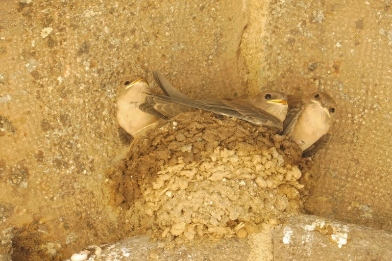 Allez une dernière photo... Juste devant le porche, au sol, des traces trahissent la présence d'un nid, au beau milieu de l'arc ! Et si on lève les yeux...