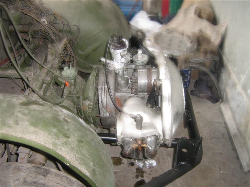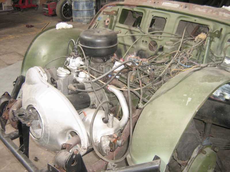 Le moteur a été révisé (je n'ai pas de détail sur ce qui a été fait et comment) et a retrouvé sa place sous le capot. Il semble que la dynamo ait été remplacée par un alternateur.