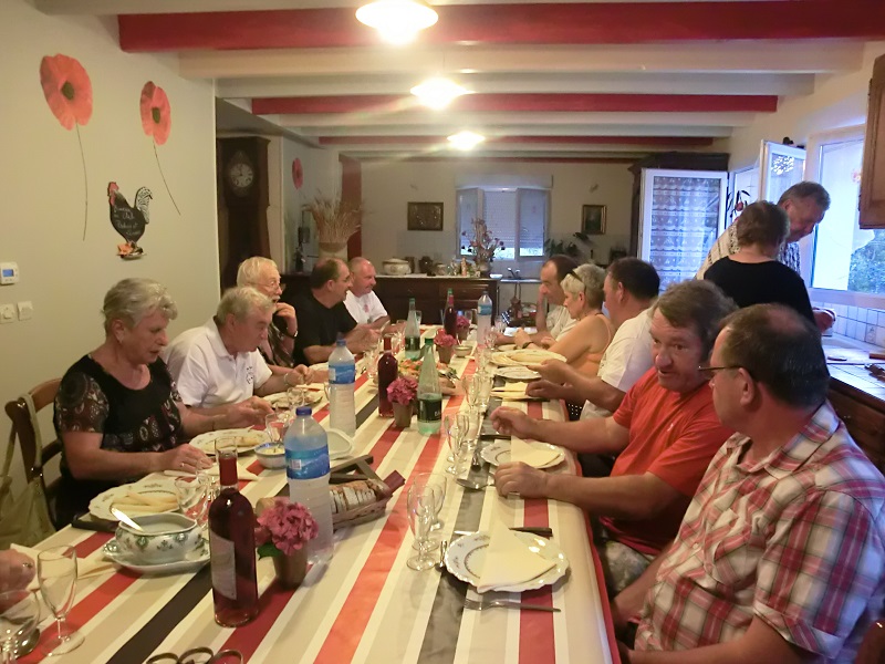 Puis nous prenons la direction de Saint-Quentin de Baron où les propriétaires des lieux, les PIRABEAU, soutenus par les COLLIN et avec l'aide d'autres adhérents ( c'est ça le Tour de France de notre Club !)nous attendent pour le repas.