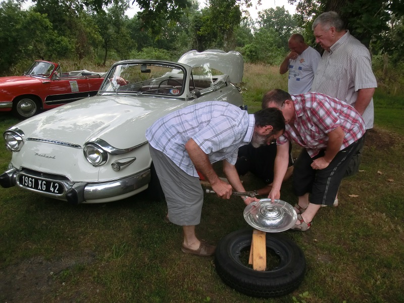 Le lendemain, on est déjà le 23 juillet, on fait la photo et on se met en route... ou presque car Gégé s'aperçoit que sa roue est crevée...