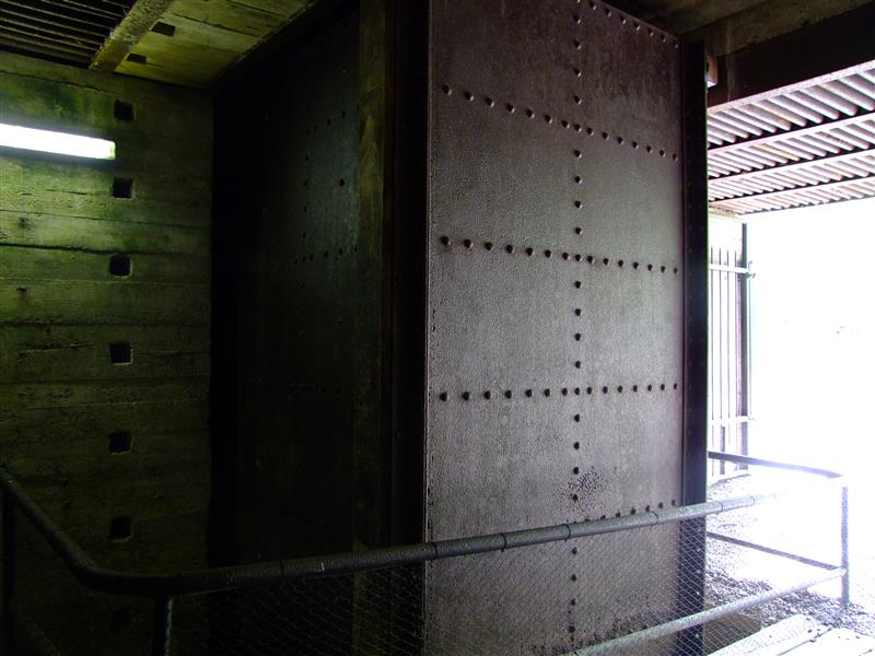 Comme il était prévu que le site serve de pas de tir, une énorme porte blindée, que nous avons vu fonctionner, fermait l'accès du site d'assemblage des fusées.