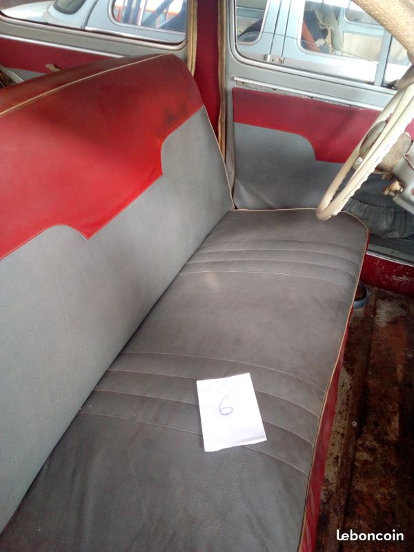 elle a un magnifique intérieur rouge et gris, elle a du faire peur, lol , mais un examen de ses coutures m a permis de constater qu' il n y avait pas de gros dégâts, rouille superficielle sur le plancher et un petit trou au support de cri avant droit