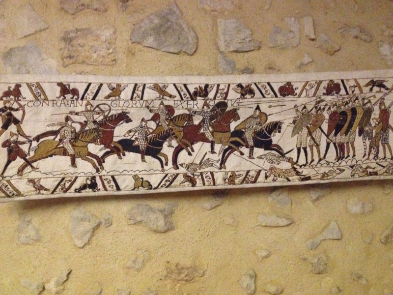Sur ce, visite de la BD de Bayeux entendez par là la célèbre tapisserie récemment restaurée et la journée termine à sa fin par une planche de charcuterie, fromage, vin rouge chez un caviste, attention il faut quand même rentrer et on dort à une vingtaine de kilomètres dans le Bessin, fini le pays d’Auge et ses chaumières place à la roche calcaire dite « de Caen » qui a d’ailleurs servit à Guillaume le Conquérant et ses architectes pour construire les châteaux en Angleterre !
