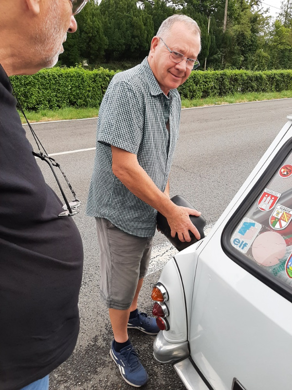 Le trajet ne sera perturbé que par la première panne d'essence du voyage... Ce sera pour le break dont le carbu a été changé avant le départ et qui semble induire une consommation plus forte ! Heureusement il y a dans le groupe toujours un prévoyant !