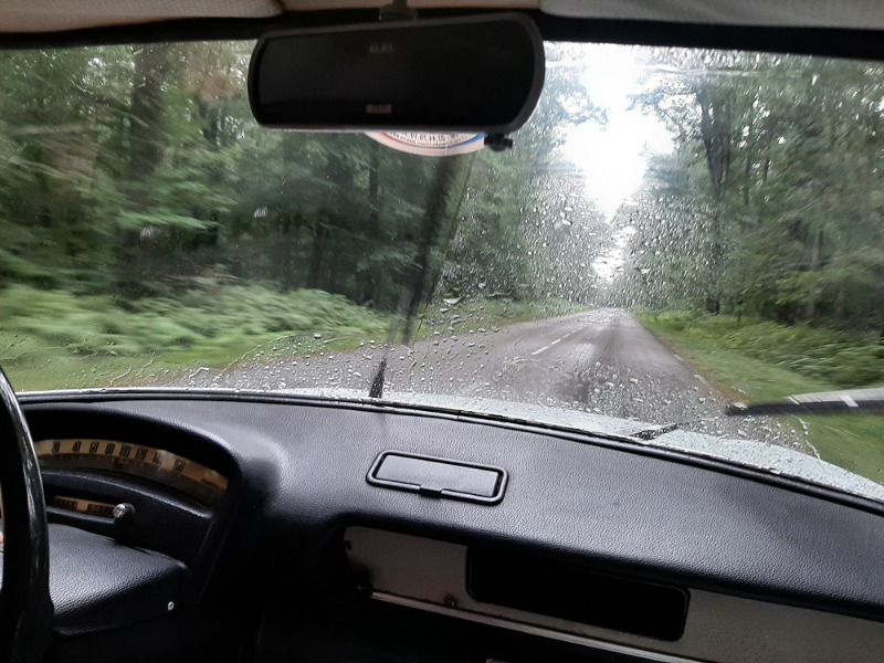 Puis nous traversons la Forêt de Tronçais. Ce qui aurait dû être un charmant parcours bucolique ne l'est pas vraiment, surtout pour nos deux équipages en cabriolets car on essuie une sacrée averse !
