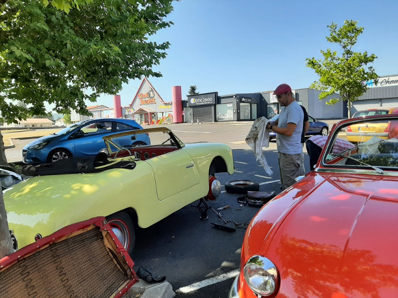 Départ le vendredi 22 juillet, la même équipe que les années précédentes : cette année les montures sont un Junior de 1953, un cabriolet Z15 de 1958, un break PL17 de 1964 et une 24 BT de 1967.
