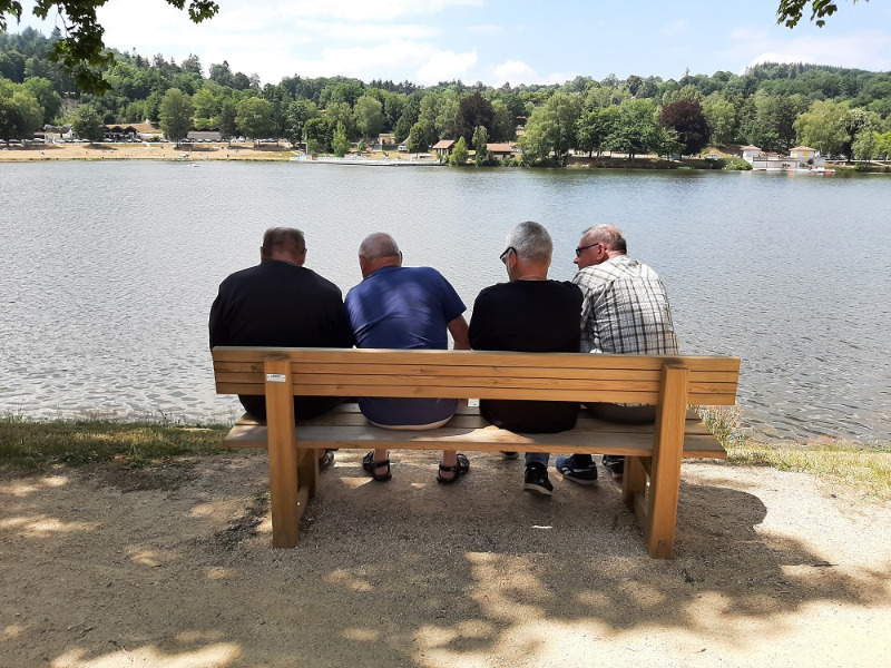 On va chercher une aire de pique-nique assez longuement : il n'y en a pas sur cette route ! Panneau "plan d'eau" sur notre gauche, on s'embarque mais on grimpe, on tourne, on monte, un plan d'eau ce n'est pas sur les hauteurs.... On roule, on grimpe, puis on redescend enfin. Près de Saint-Rémy sur Durolle nous trouvons finalement notre plan d'eau, il est près de 14 heures mais on ne se laisse pas abattre par si peu : pique-nique !